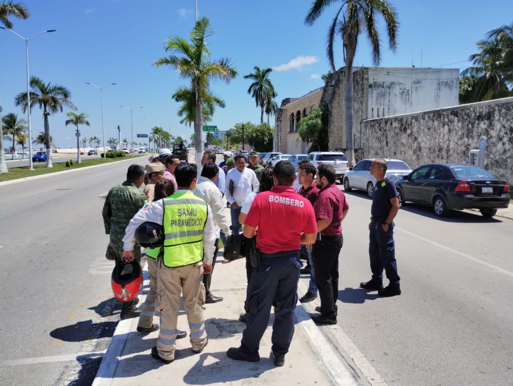 Autoridades de Campeche afinan detalles con motivo del desfile del 16 septiembre en el malecón de la ciudad.
