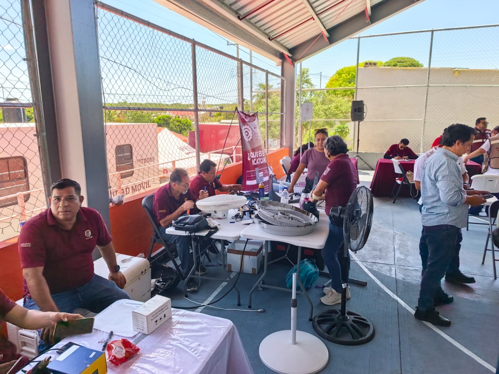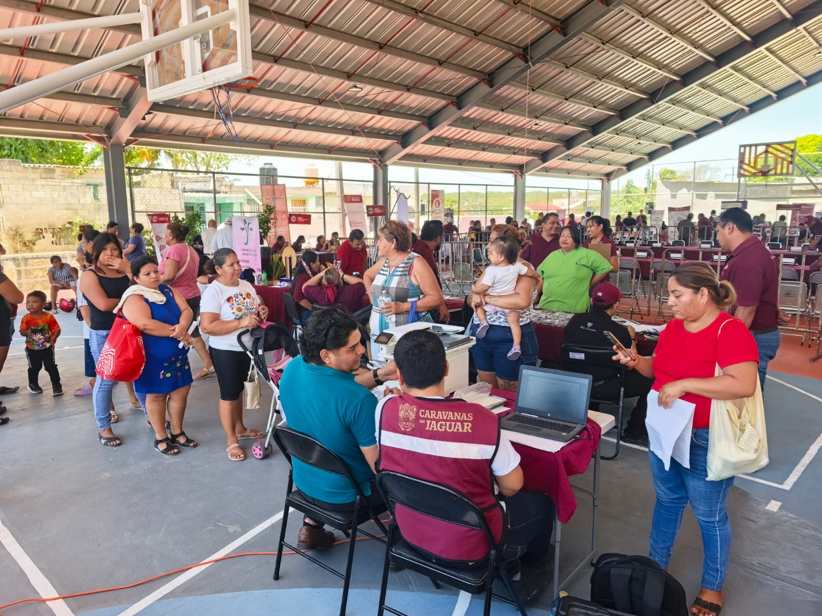 Desde la cancha techada de esta colonia la cual fue rehabilitado el año pasado la gobernadora de Campeche atendió de manera personal algunas solicitudes de ciudadanos mientras que los stand de dependencias atendían también a los vecinos.