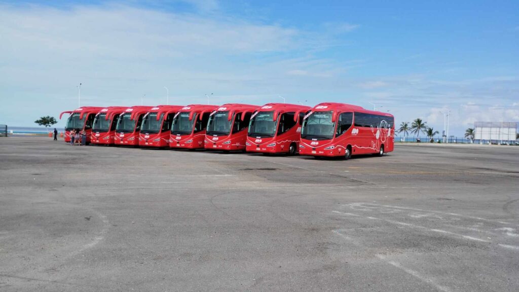 Llegan unidades de ADO Mobility a Campeche, siendo presentados esta tarde por representantes de la empresa.