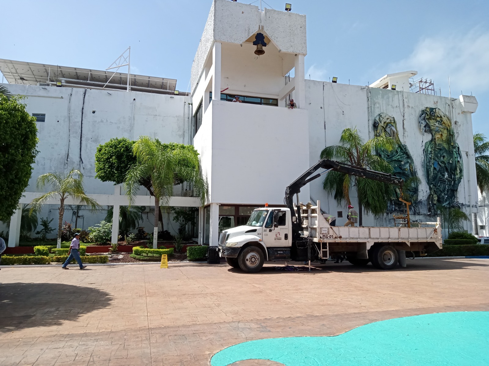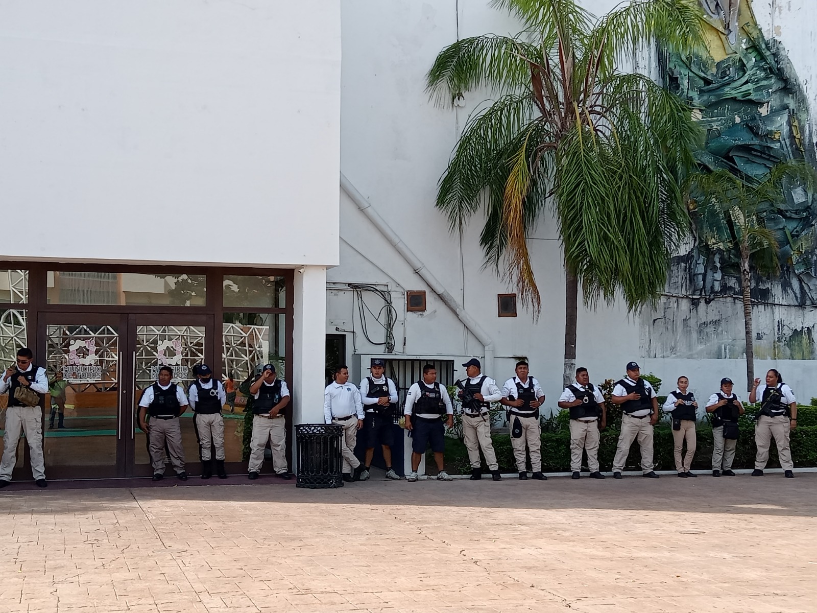 Cabe destacar que antes que llegan los manifestantes a la puerta del ayuntamiento, el edificio fue blindado por una veintena de policías municipales (antimotines), sin embargo, como a las 09:00 horas, llegó al palacio municipal un camión tipo yap, con personal de la dirección de Servicios Públicos Municipales, quienes atravesaron la unidad a la entrada de la comuna, para iniciar trabajos (adornos) a la fachada por la cercanía a las Fiestas Patrias.