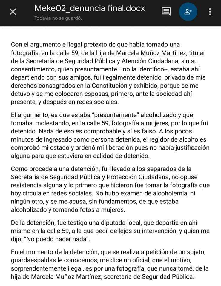 Román hacía su labor sobre la calle 59, encontrándose de forma circunstancial con una de las hijas de la titular de la SPSC, Marcela Muñoz Martínez. Un par de minutos después oficiales de la policía llegaron. Le hicieron de conocimiento al comunicador que había sido reportado por estar molestando y tomando fotos a mujeres.