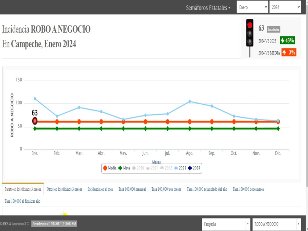 A pesa de la tendencia a la baja de un 43% del delito de robo a negocio en el estado de Campeche, en el mes de enero, en comparación al mismo mes del año pasado, continúa preocupando a los campechanos la inseguridad que existe en la entidad, ya que algunos robos a comercios se han suscitado de manera violenta, de acuerdo con estadística del Secretariado Ejecutivo del Sistema Nacional de Seguridad Pública (SESNSP), y detallada en municipios por Semáforo Delictivo de Campeche.