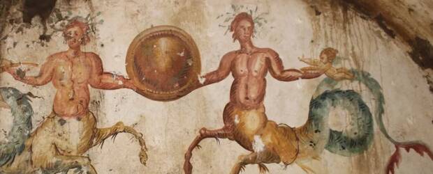 Dentro del sarcófago había pinturas de otros seres mitológicos como los centauros marinos, los cuales eran el emblema de algunas familias de la nobleza.