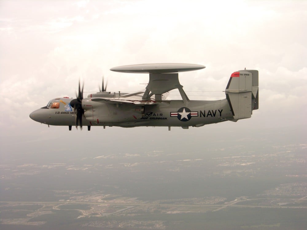 Además de los aviones y barco ya mencionados, también se avistó una nave de vigilancia E-2D Hawkeye. Esté avión, tiene un increíble potencial pues prácticamente nada se le escapa, es como literal tener ojos “que todo lo ven”. Encima de eso tiene una herramienta que intercepta comunicaciones o bien puede bloquearlas a voluntad. Principalmente se usa para rastrear y seguir objetivos, pero también puede ser usado para apuntar misiles que son disparados desde el portaaviones.