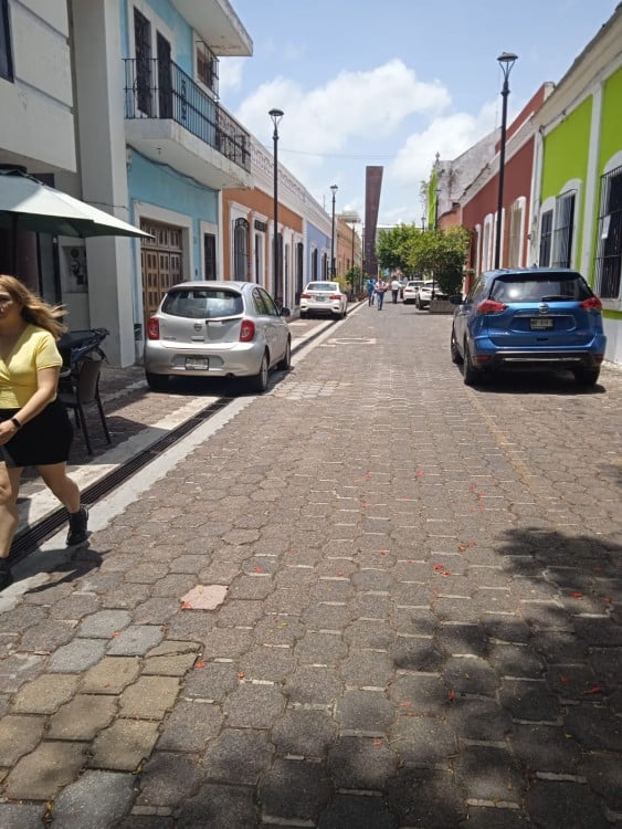 Imagen Dos: Ya que estamos en esta calle Sáenz de corte peatonal desde Zaragoza hasta 27 de Febrero, todo lo hermoso y tradicional de este rincón de la capital, se ve afectada en su imagen por muchos vehículos que supuestamente tienen permiso para circular y sobre todo, utilizar esta importante calle como estacionamiento. Observe usted la cantidad de autos de lado a lado, pero el espectáculo se registra cuando se desplazan en esta calle sin el mínimo de precaución ” aventando” el coche a los ciudadanos. A quien le corresponde ordenar este desorden vial ?…a ti ?…y entonces que esperas?. Servidos…no puej’!!!