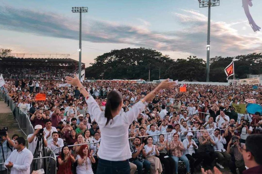Claudia Sheinbaum terminó la reunión y se trasladó hasta el municipio de Champotón. El evento ante miles de morenistas fue nota en Campeche.
